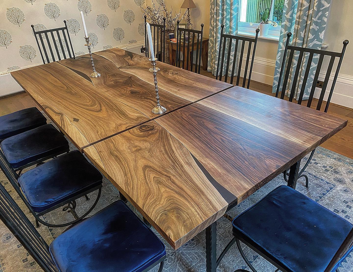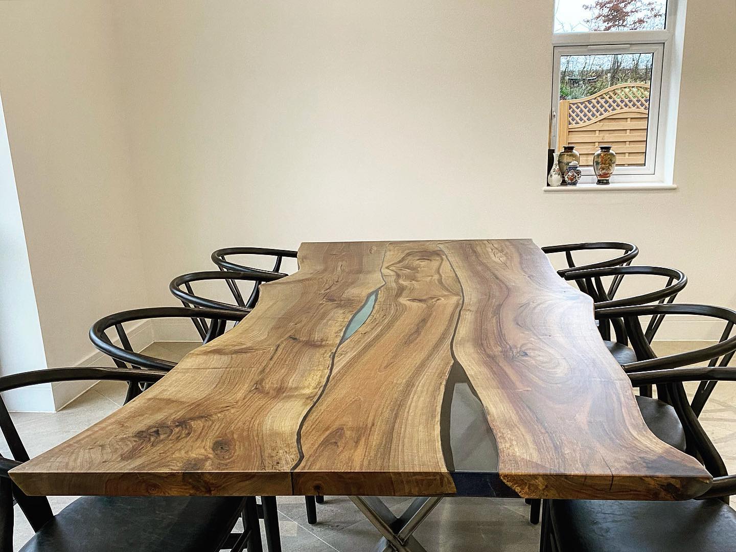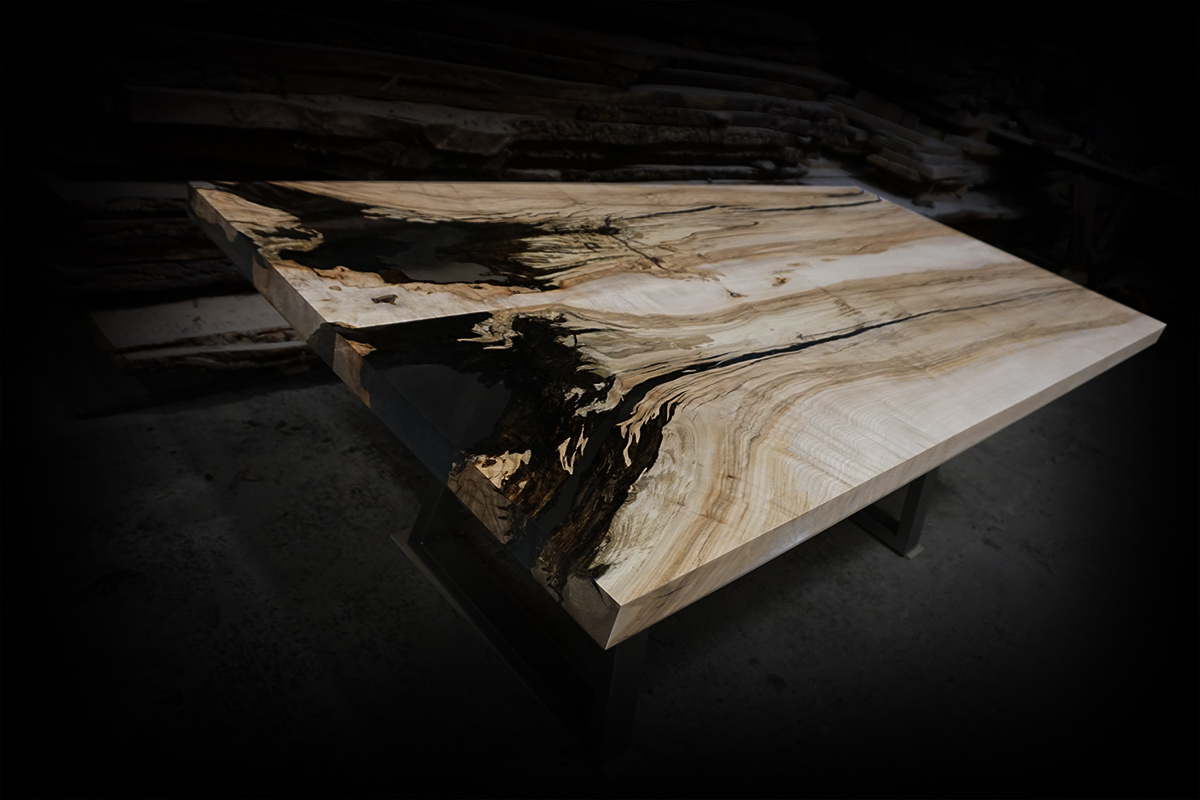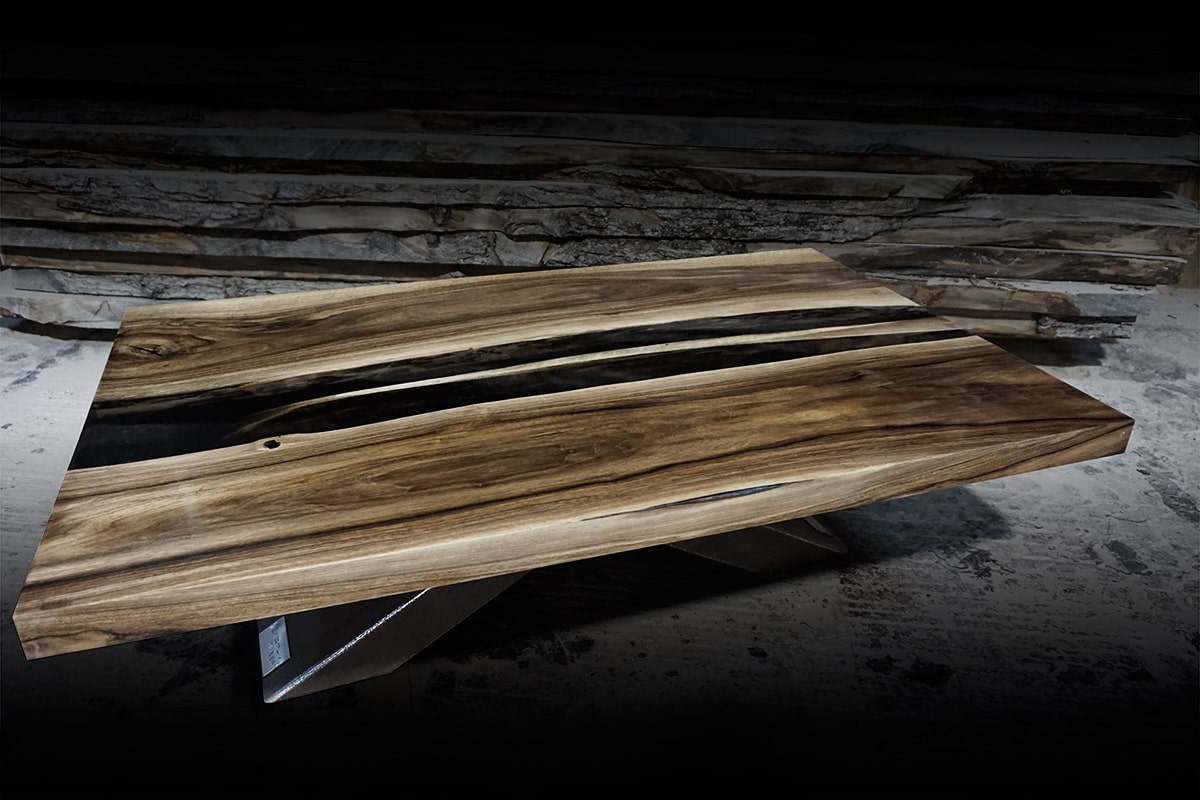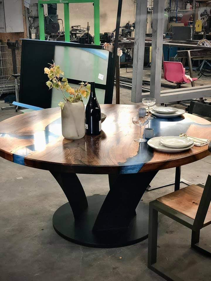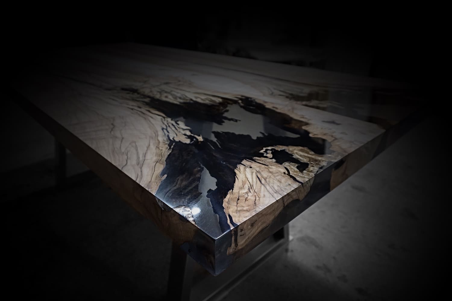 Are you looking for a conference table or a custom dining table filled with epoxy resin? Submit your idea! American manufacturing. Creator of high-end wooden furniture, we support you in the design of unique and tailor-made pieces according to your desires.