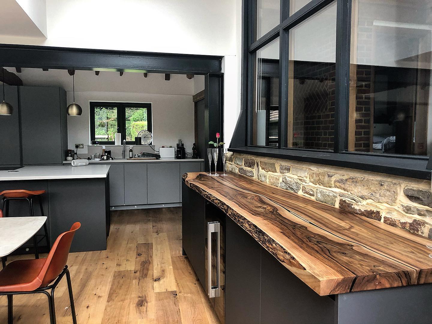 In our workshop you can make the purchase of less expensive, also crafted in house, high quality wooden tables, breakfast bars, kitchen islands , full stave wide stave worktops, shelves, bathroom sink vanity tops, coffee tables or desks.